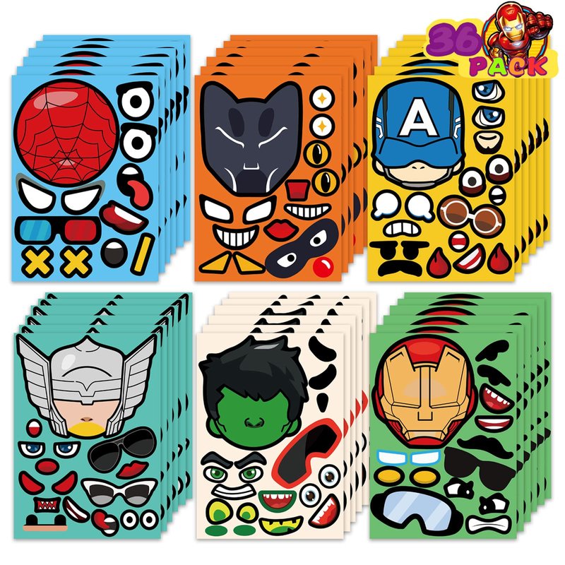 36 Sheets Make-a-Face Superhero Stickers for Kids Teens, Make Your Own Superhero Face Stickers, Party Favors Gift Supplies Art Craft School Classroom Teacher Reward