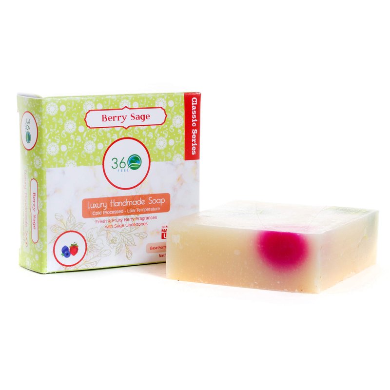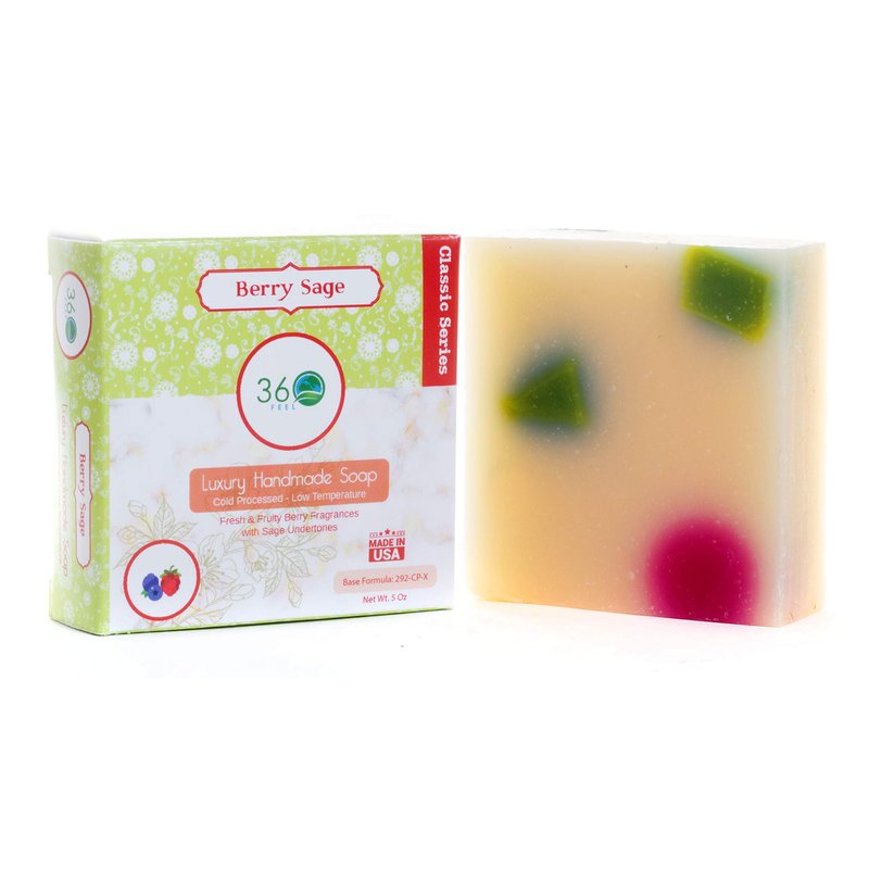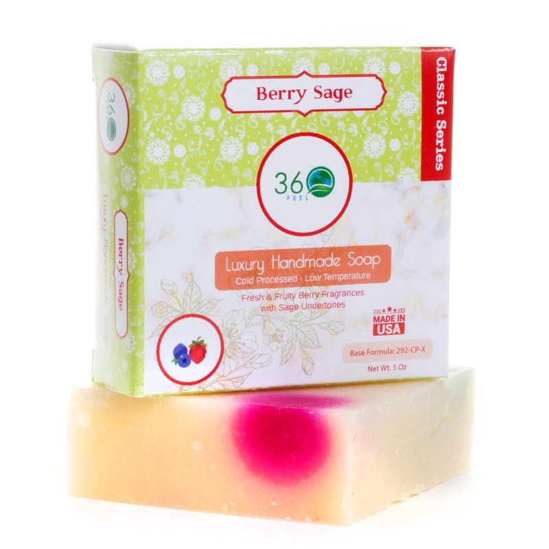 360Feel Berry Sage Soap -5oz Castile Handmade Soap bar-Fresh Fruity, Berry with Sage undertones- Pure Essential Oil Natural Soaps- Great as Anniversary Wedding Gifts- Gift ready