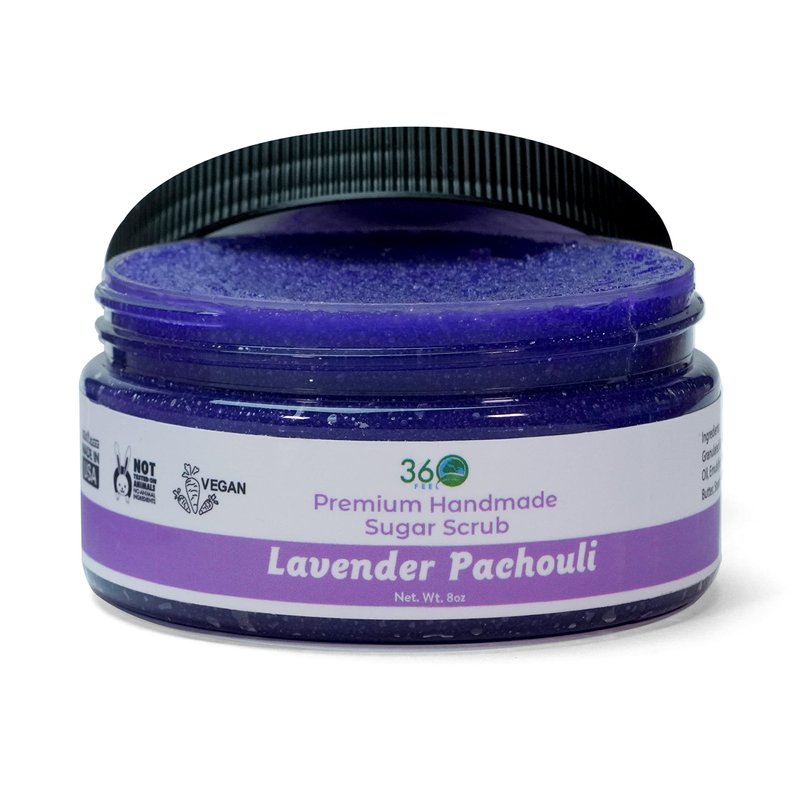 360Feel Lavender Patchouli Sugar Body Scrub - Great for Exfoliating Body Scrub Acne Scars Stretch Marks Foot Scrub Great Gifts For Women - 8 Fl Oz