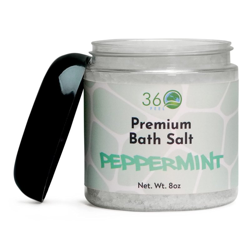 360Feel Peppermint Detox Bath Salt Body Scrub - Great Exfoliating Body Scrub for Acne Scars Stretch Marks Foot Scrub Great For Women Body - 8 Fl Oz