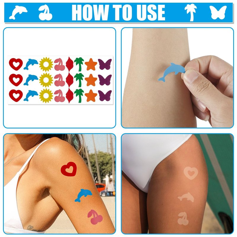 - Package Includes: You will receive 15 sheets of tanning stickers, in 8 styles, in total of 360 pieces. Sufficient quantity for your daily use and replacement, or you can also share with friends.