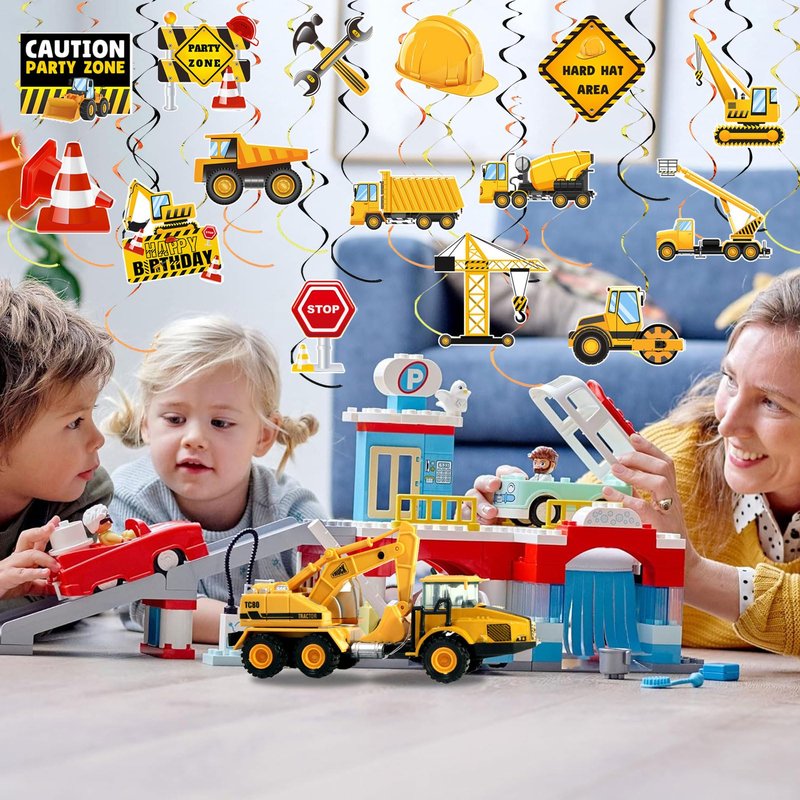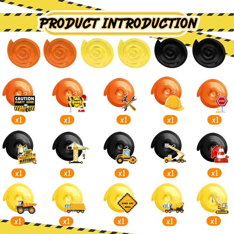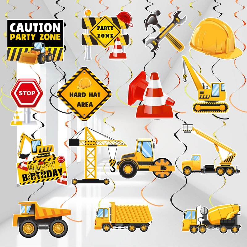 - These construction hanging swirl for tables are ideal for baby shower, birthday, construction themed parties, camping, school activities and so on, adding festive atmosphere.