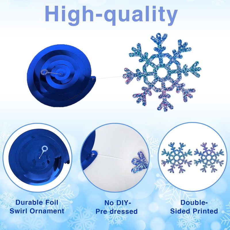 - Package Includes: You will receive 36 pieces of Glittery Christmas psnowflake foil swirl decorations set.12pcs Christmas snowflake foil swirls, 12Pcs double spiral hanging swirls(4 colors).Enough quantity to meet your various decoration needs, you can mix and match with Share with your friend and family