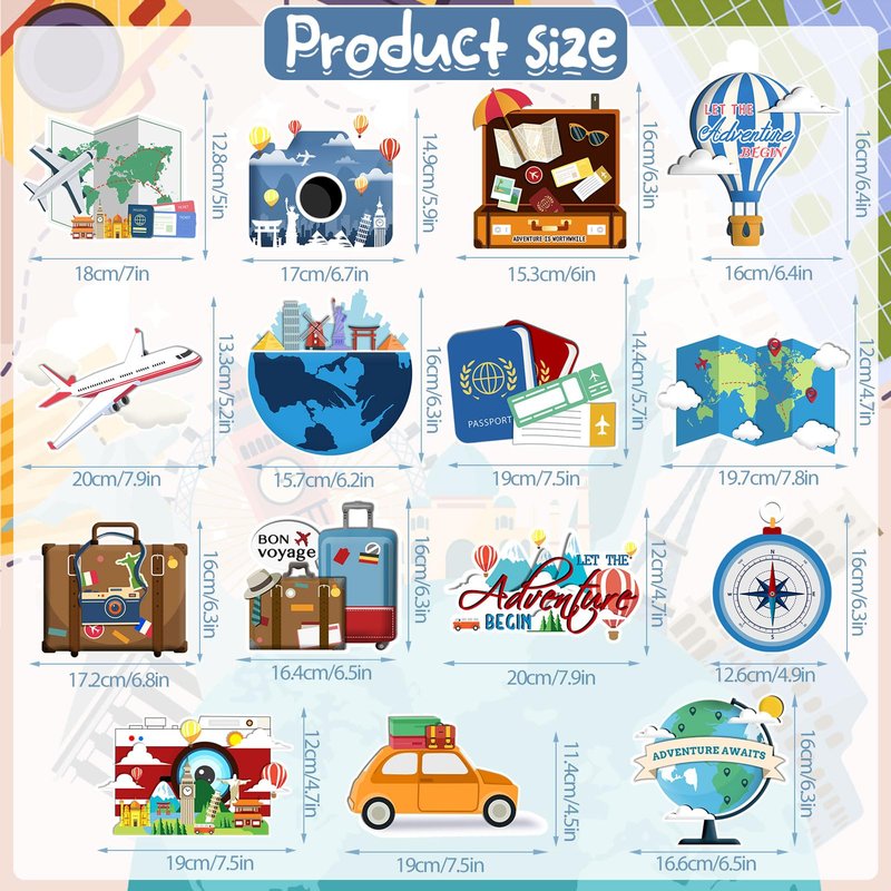 - ALL IN ONE PACKAGE: You will get 36 piece of travel themed party decorations set,including 15 pieces of various Adventure Awaits party supplies cards with double sided printing cutouts ,15 single spiral and 6 double spiral decorations.These travel the world party decorations is perfect for the world map theme party,which can create a fun, joyful and warm atmosphere for your travel party.