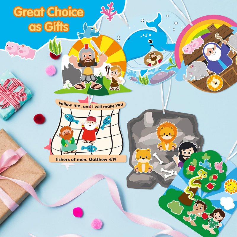 - Great Choice as Gift-- Our religious Sunday school craft kits have all kinds of cute animal patterns and bible stories. The lively style and bright colors will certainly attract children; When children receive such DIY craft gifts, they will feel very happy.
