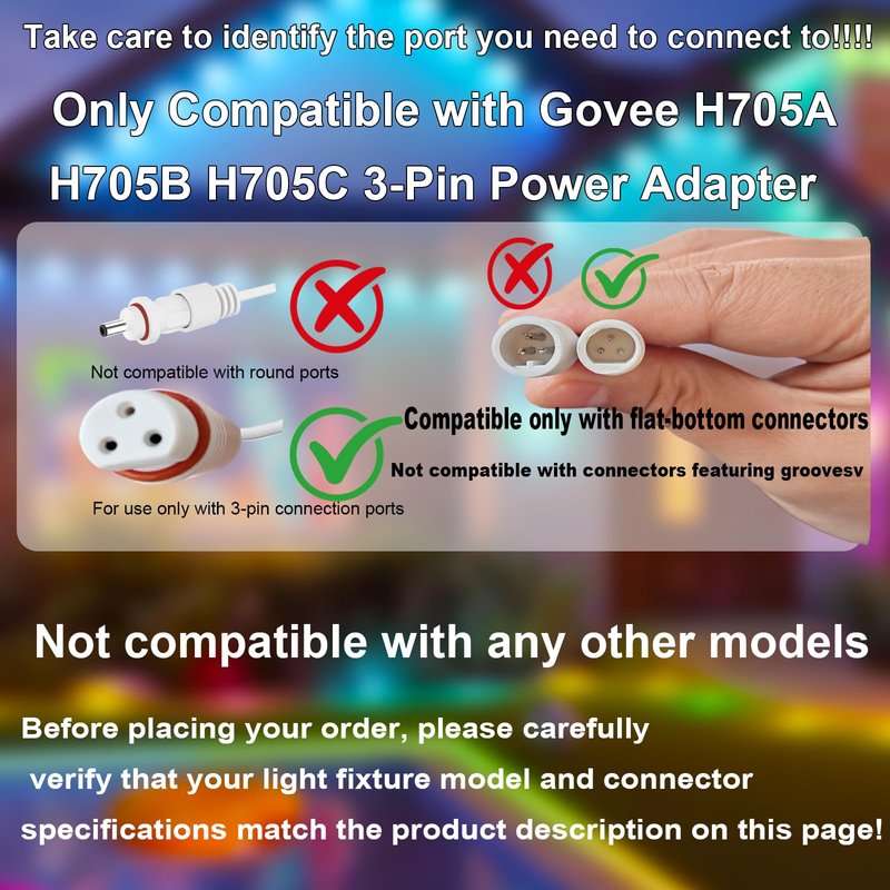 - Please note: This product is incompatible with 3-pin connectors featuring grooves. It is only compatible with flat-bottomed 3-pin connectors. Please double-check the attached diagram to confirm your connector matches this specification.
