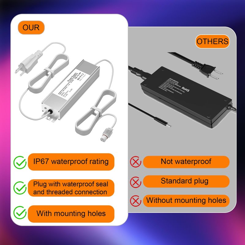 - ใHigh safety factorใOur 36V Waterproof Power Supply is made of advanced IC chip with voltage protection, current protection, temperature protection, overload protection After strict testing to ensure that it is suitable for Govee H705A H705B H705C Permanent Outdoor Lights