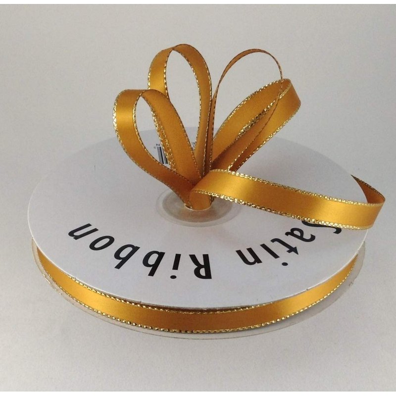 3/8" Antique Gold with Gold Edge Satin Ribbon 50 Yards Spool Single Faced Polyester
