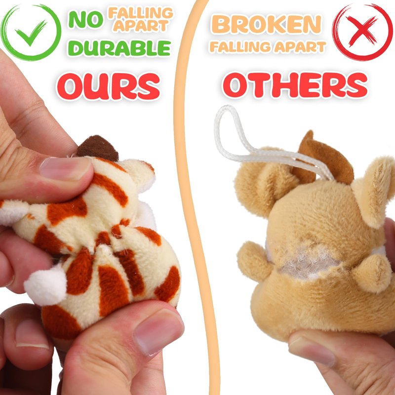 - Safe Material: Our stuffies are filled with high-quality plush, which is soft to the touch, comfortable and bring safe companionship to children! Each measures 2.5-3”, the tiny stuffed animals are small size for toddler little hand to grab.