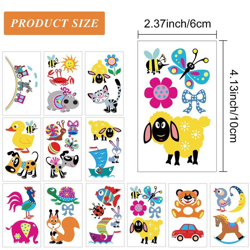 - Temporary Tattoos for Kids: This tattoo stickers kit contains many fun elements that kids will like, such as sun, moon, car, pig, elephont, dog, cat, duck etc. Widely application for kids variety choices, make more fun !