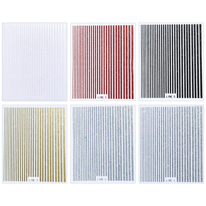 The package includes: 6 sheets glitter lines nail stickers