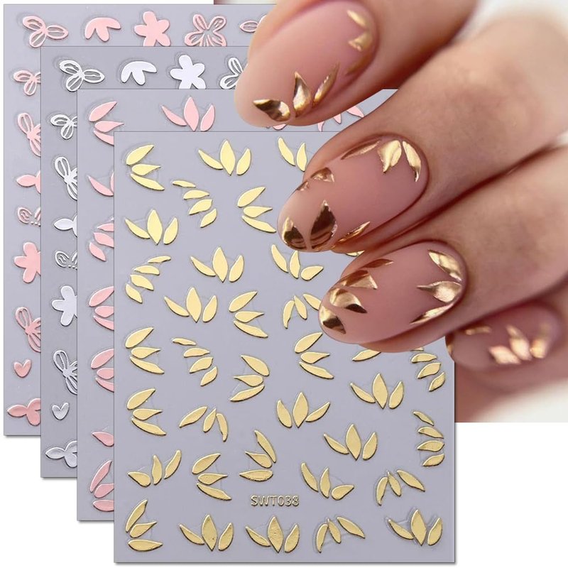 - 【3D Flower Leaf Nail Art Stickers】You will get 4 sheets of metallic colors flower and leaf nail decal stickers in differern designs, which can provide more choices for your nail design and bring you a good nail experience.