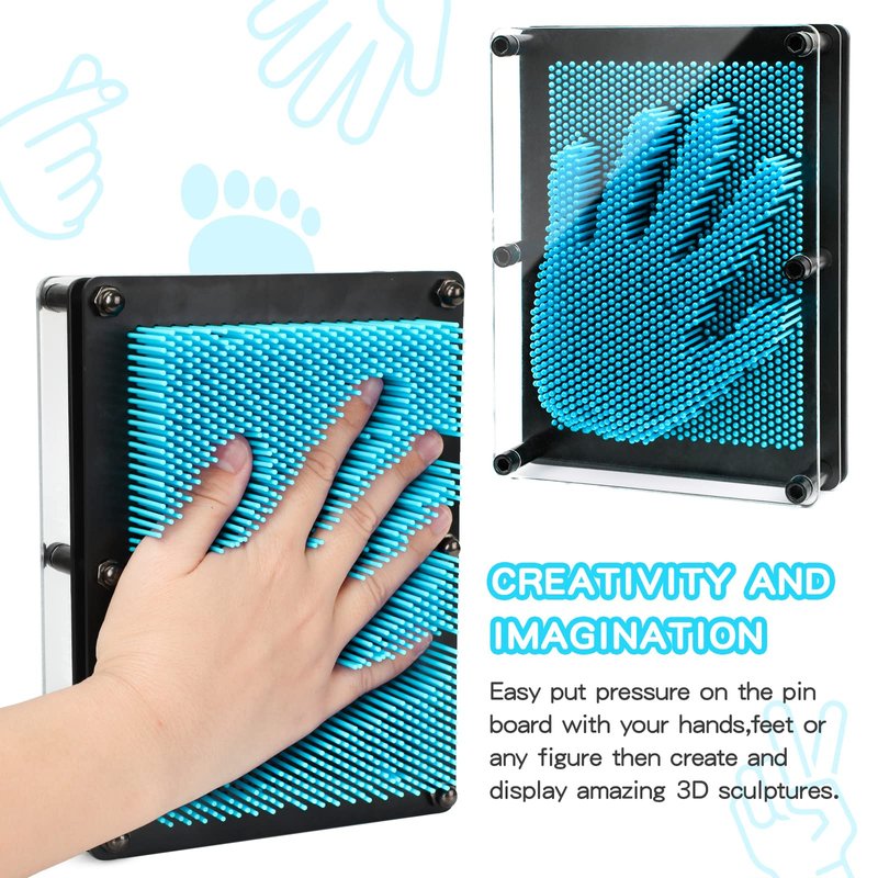 - Pin Toy Features: Unique plastic pin board toy is different from metal pin impression toy; Our hand pin toy is lighter than other impression toy; Anytime you want to make a new print you place it horizontally and the pins toy is back the way it was
