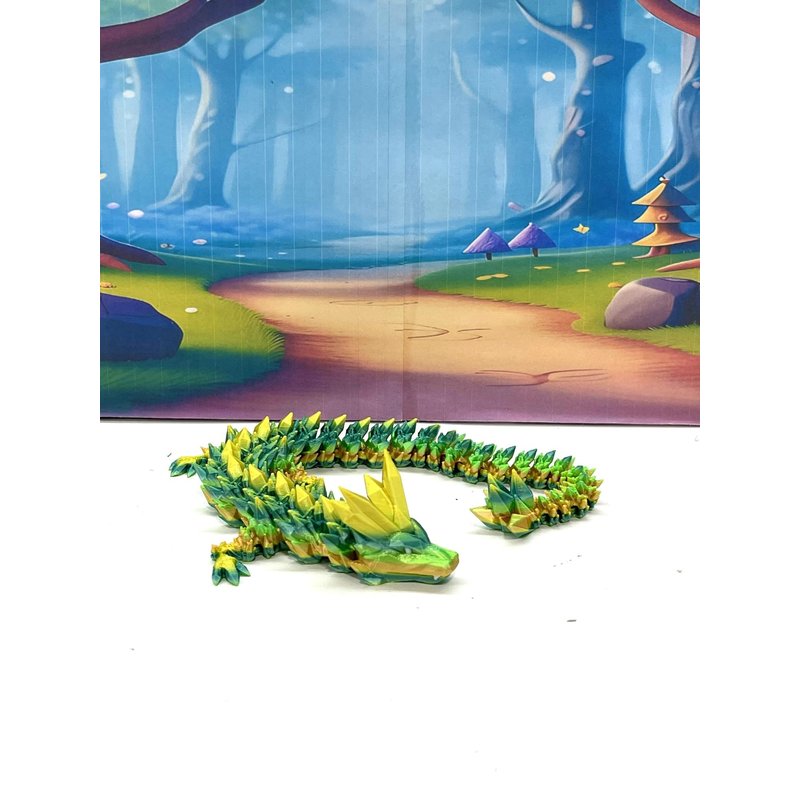 3D Printed enchanting Articulated Dragon - a mystical creature that brings a touch of fantasy to your world. Unveil the mystery of this awesome Crystal Dragon ( measures 12" long) a captivating fusion of elegance and fantasy, this dragon reveals itself with a symphony of colors - a testament to its magical heritage. ------- Small Components Advisory: ------- Please note that this product may contain small components and might not be suitable for very young children. Given the characteristics of 3D printing, there is a potential for small components to detach if handled aggressively or dropped. Therefore, we advise against allowing younger children to interact with the dragon. Please consider that 3D printed objects might include minor imperfections such as layer lines. These are a natural and inherent aspect of the printing process. We strive to produce the highest quality items, and these imperfections contribute to the unique character of each piece. Recall the unique creation of each dragon, crafted exclusively for you. The color selections available are depicted in the provided photos. Please be aware that variations in color may occur due to discrepancies in filament production and the characteristics of the monitor or screen you are utilizing to view the listing. Additionally, the arrangement of prints using multi-colored filament rolls can influence color distribution. ------- Licensing Information: ------- Authorized Design: NOHo3D holds the official authorization for the production of this exquisite design created by CinderWing3D.