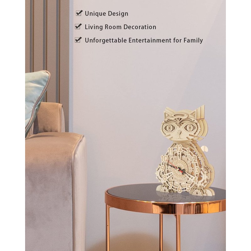3D Puzzles for Adults Model kit Cat Clock Kids Wooden Desk Clock Decor for Birthday Gift/Christmas Day