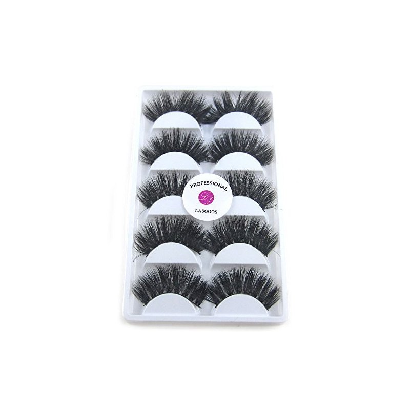 3D Real Mink False Eyelashes LASGOOS 100% Siberian Mink Fur Luxurious Soft Cross Thick Very Long Wedding Party 5 Pairs 20mm Fake Eye Lashes K02 (1 Pack-5 Pairs)