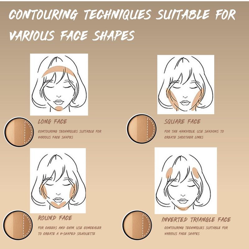 - HOW TO USE 1. Hairline: from the temple to the chin contour, making the face look slimmer. 2. Jawline: Draw contours along the mandibular and mandibular lines to shape the jawline. 3. Zygoma: Contour from temple to mouth to create clear cheekbones. 4. Both sides of the nose: From the front of the eyebrows downward to the base of the nose, create a longer, taller nose. 5. Eyelids: Swipe across the eyelid contour to make eyes appear deeper.