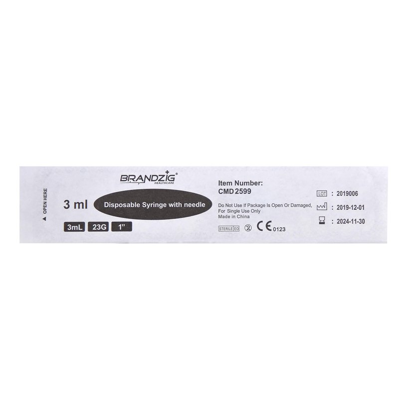- MEDICAL SUPPLIE – Each Brandzig 3ml Syringe with 1" Needle - 23G, comes individually sealed in a blister package ensuring maximum safety and sterility.