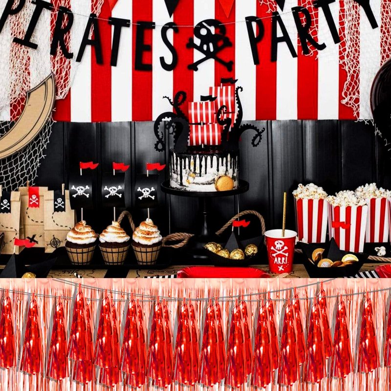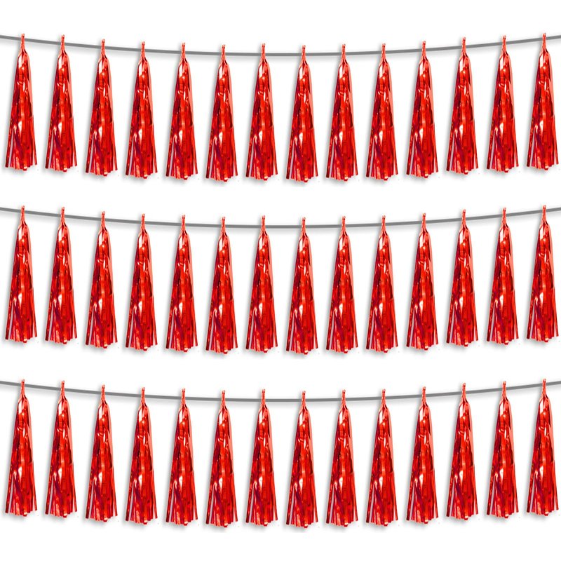 3P Red Foil Fringe Metallic Tassel Streamers Banner Tassel Garland for Parade Floats, Bachelorette, Wedding, Birthday, Halloween, Christmas, Bridal/Baby Shower Party Decorations