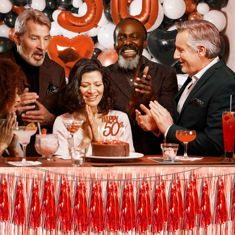 - 【Red Party Supplies Set】: The total length of the red birthday tassels banner is 29.5 feet 45tassels, divided into 3 strips, each 9.8 feet long. Each banner contains 15 tassels, and each tassel measures 14 inches, for birthday decorations many occasions, and so on