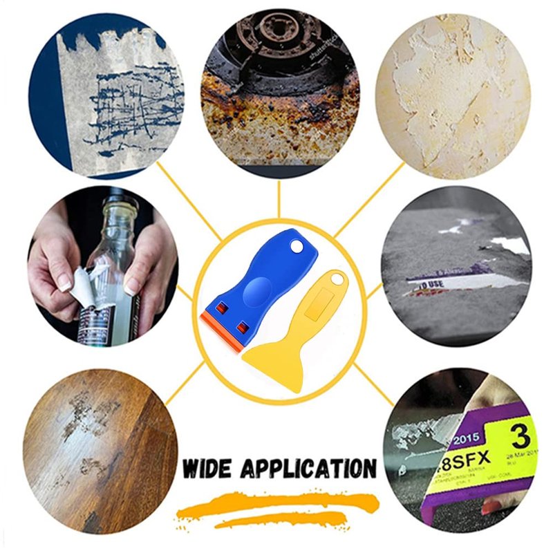 - Muliti-Function Plastic Scrapers&Spatula,With perfect angle and small size,cleaning scrapper tool apply to remove adhesiver on 3D printer 1.Car use: remove vinyl decals sign tint film glue residue; 2.Home use: Remove glue,putty from glass, tile, wall, floor, carpet, ceiling,Induction stove; 3. Removing paint, putty, decals,sticker and labels from windows, mirrors or jar; 4. Clean up dried or burned food on your glass ceramic stove top,cooktop, oven. 5. Scraping oil paint off palette.
