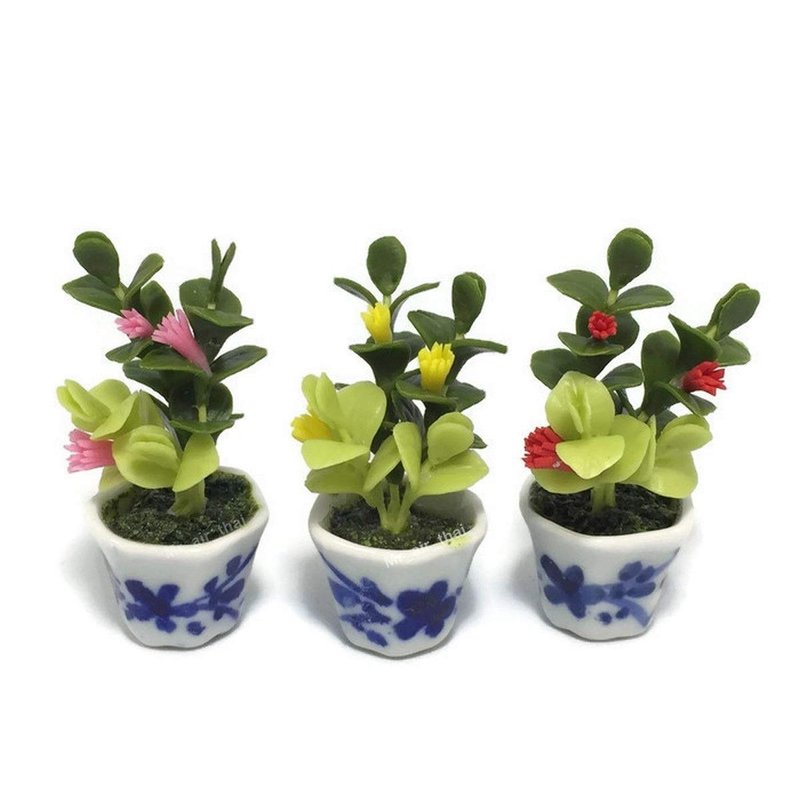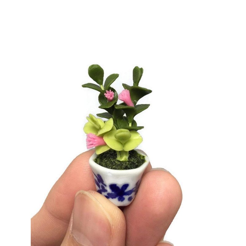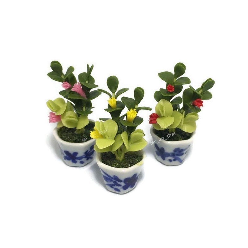 3pc Miniature Flower Clay Dollhouse Fairy Garden Mini Plant Trees Ceramic Paint Furniture Bundles Artificial Flowers Tiny Orchid #093