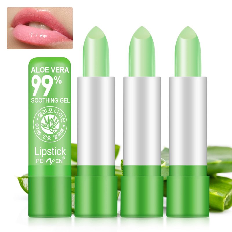 3PCS Aloe Vera Lipstick,Aloe Vera Color Changing Lipstick,24H Long Lasting Nutritious Soothing Aloe Vera Lip Balm,Magic Moisturizer Temperature Color Change Aloe Vera Lip Gloss Lip Care Set for Women