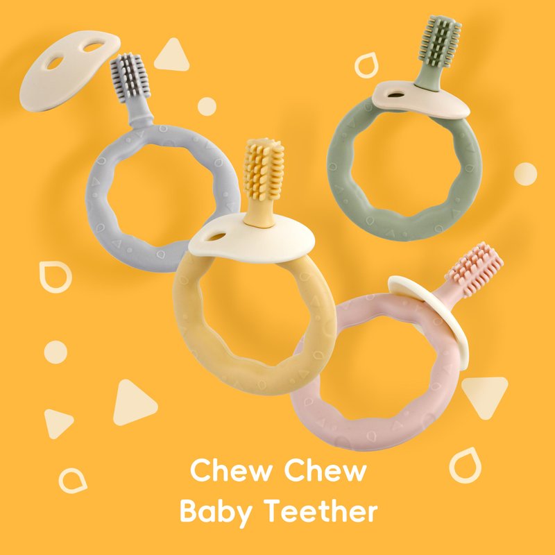 The textured surface of the chew toy massages and stimulates the gums, making it ideal for assisting the eruption of front, middle and back teeth and actively exercising the oral muscles.