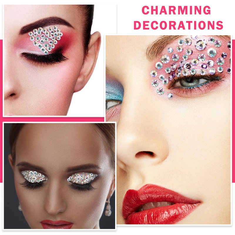 - 【Diamond-Like Sparkle】Face jewels stick on are gorgeous and bright, and have different natural shiny luster under the light, adding a layer of hazy and dreamy filters to the makeup, making the face more three-dimensional, beautiful and layered.