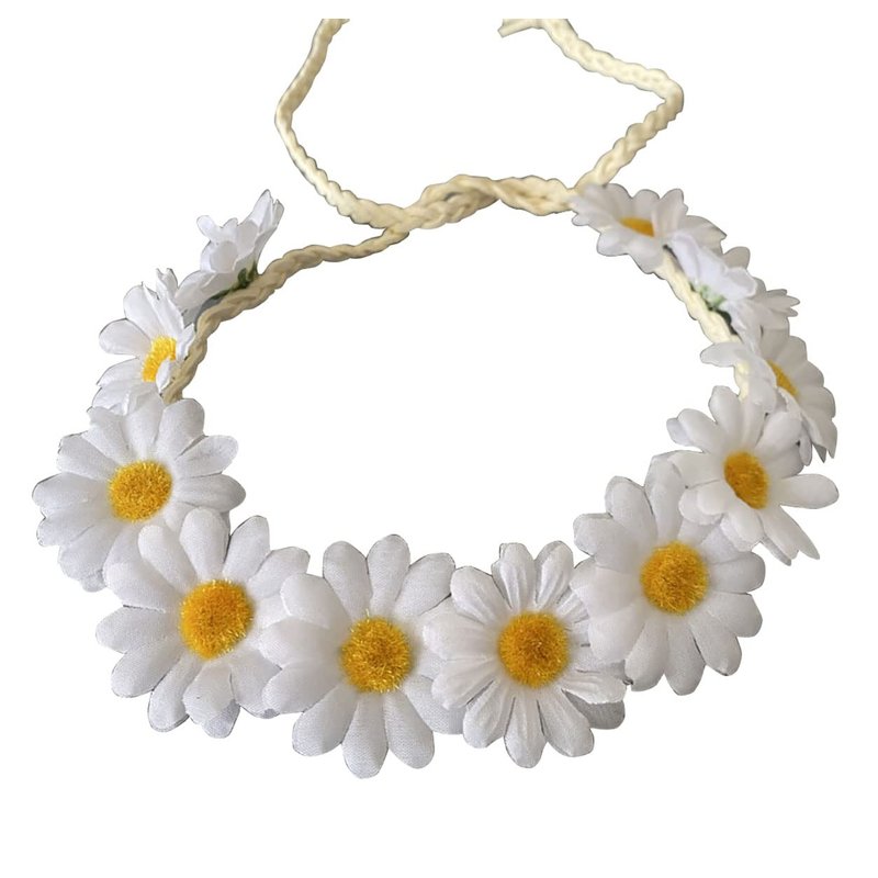 3PCS Fashion Sunflower Headband Hair Crown Wreath Headpiece Hair Band Tool Tie Wrap Wreath For Bridal Beach Scenery Festivals Girls Lady Seaside Holiday(White)