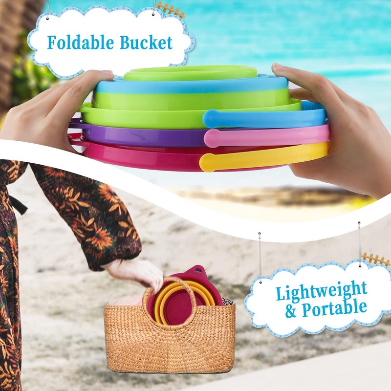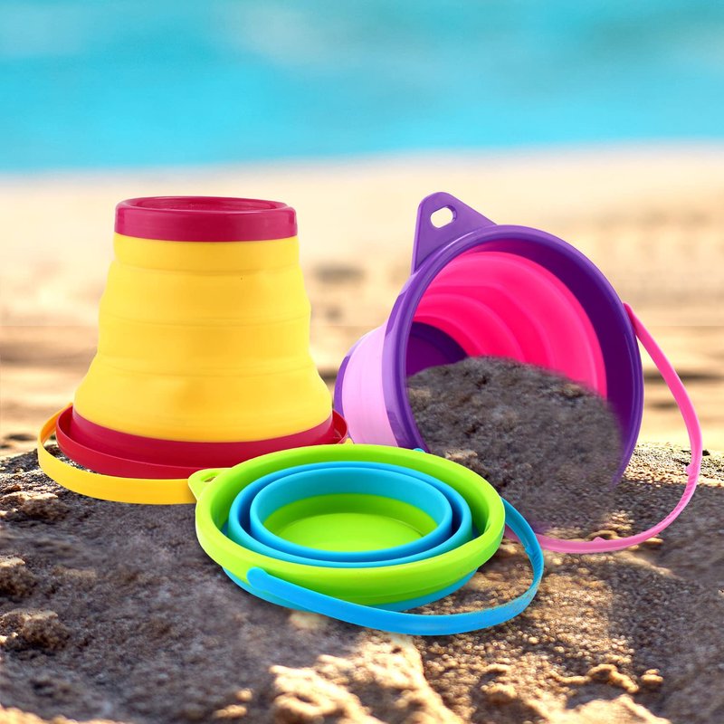 - Have Fun: If you're planning a fun day at the beach or looking for some fun beach party ideas, our foldable beach buckets are the best choice. These beach toys are perfect for party favors and prizes, or just to enjoy playing on the beach.