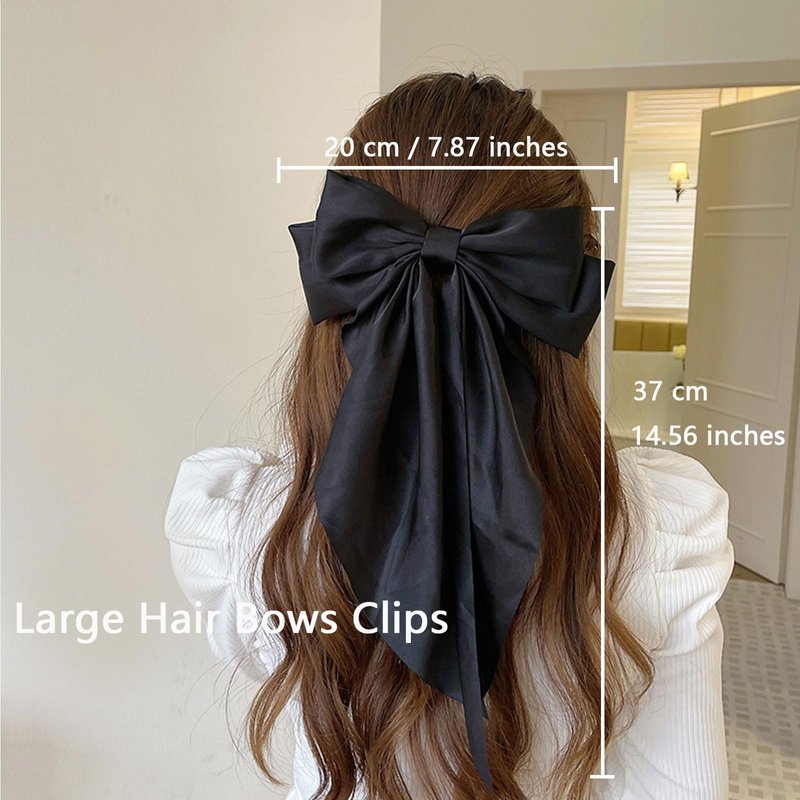 Hair Bows for Women, Oversized Long Tail White Hair Bow Clips, Silky Satin Hair Ribbons Ponytail Holder for Women Girls (Black, Red, Pink)