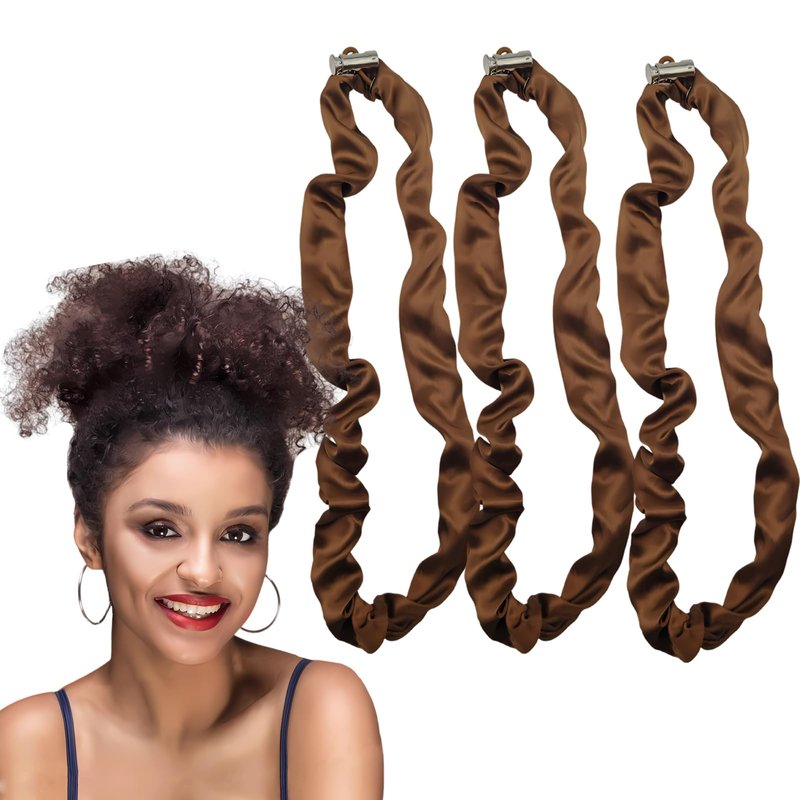 3PCS Hair Scrunchies Silk Adjustable High Elasticity Hair Ties Durable Soft Elastic Hair Rubber Bands Black Hair Ties Ponytail Holders for Women Girls Brown