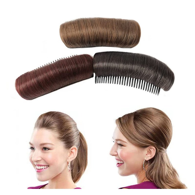 3Pcs Hair Volume Bump Inserts with Invisible False Hair Clips and Fluffy Pads - DIY Hairstyle Styling Tool Set for Women in Dark Brown
