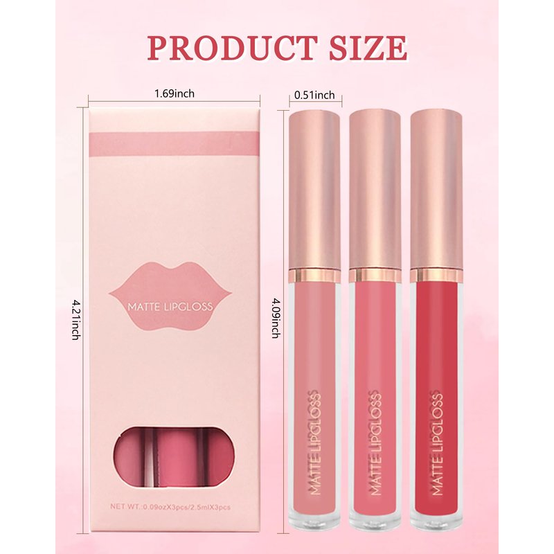 Item:3 Pcs Matte Nude Liquid Lipstick Makeup Set