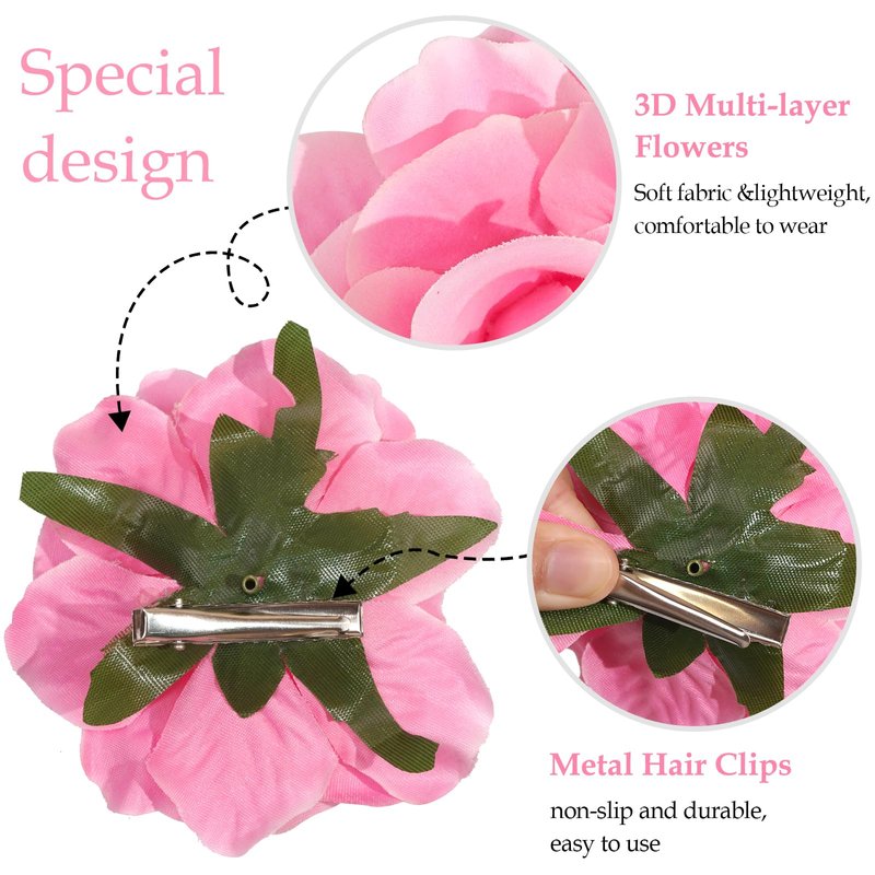 - 【Fabric Rose Hair Flowers Clips】 The stylish and attractive 3D rose flowers are realistic and cute, and the combination design with cascading petals creates an attractive look that is easy to wear and adds to your beauty