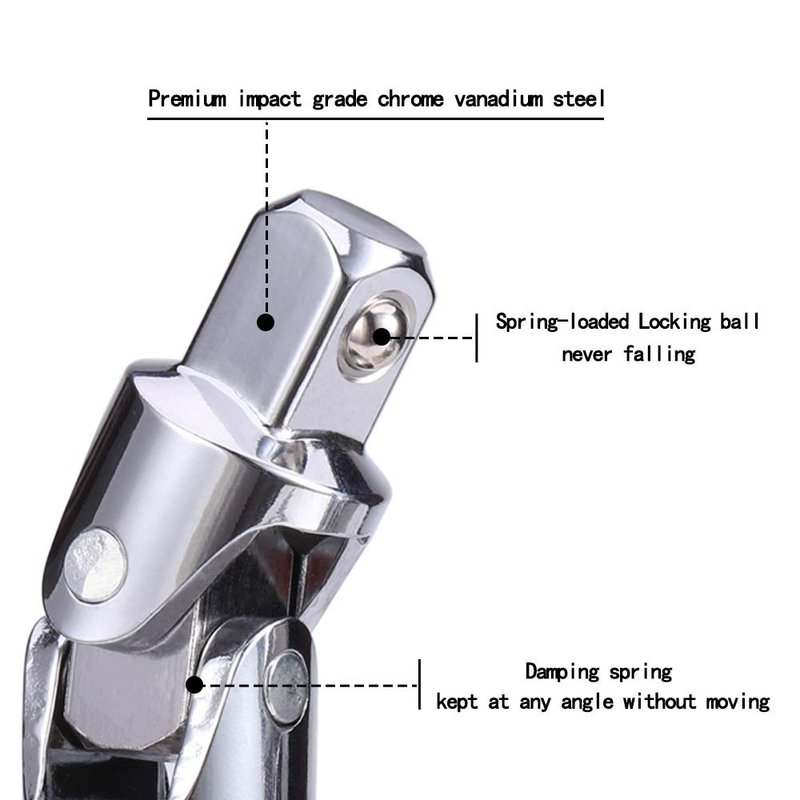 - RELIABLE: Spring-loaded locking ball keeps the universal joint set securely latch in the groove of the socket sets or extension bar, more reliable during use, not easy to fall off, improve your work efficiency.