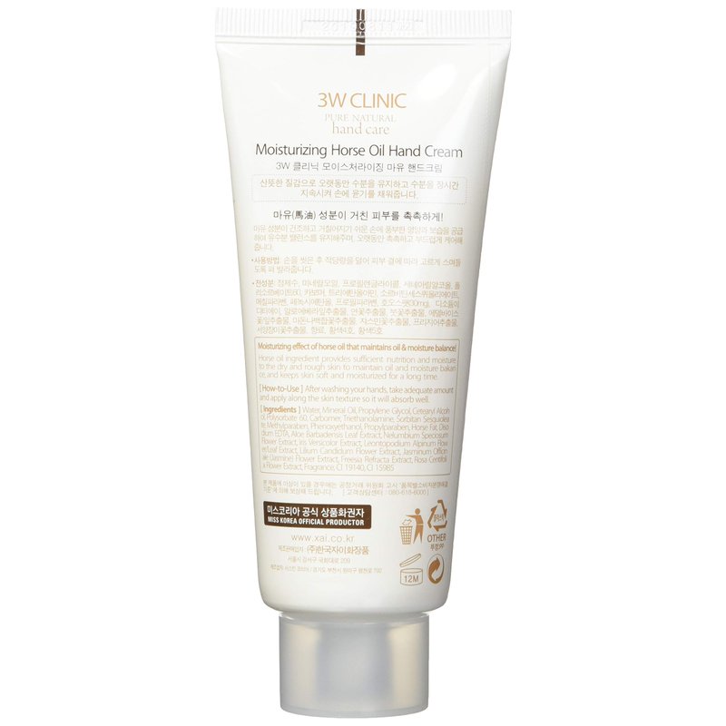 3W Clinic Hand Cream, Horse Oil, 3.38 Ounce