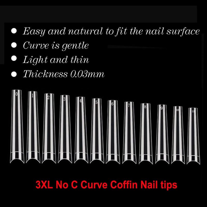 - Multifunctional Nails: 3xl Nail tip No c curve coffin is not only suitable for nail salons, DIY home nail art is also perfect for weddings, dance parties, appointments, but also suitable for Halloween, Christmas, Valentine's Day and other holidays