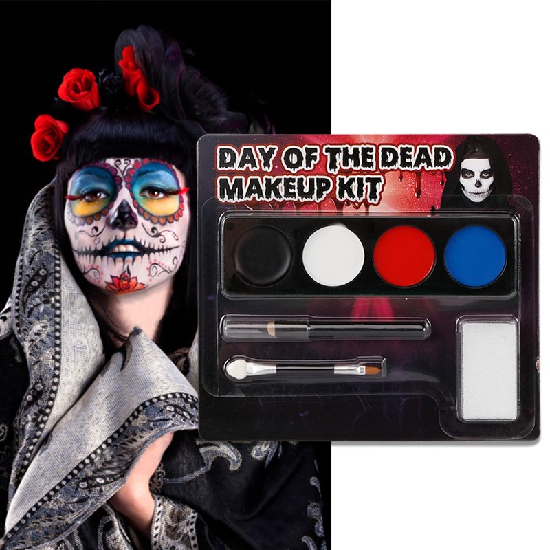 4 Colors White + Black + Red + Blue Face Painting Kit, Face Paint Body Makeup Kit for Halloween SFX Makeup, White Black Halloween Makeup Paltte with Brushes for Skull Clown Art Theater (D Set)