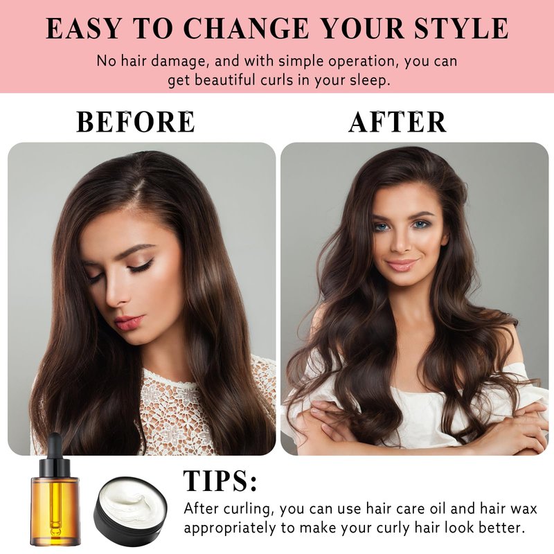 - No Heat Curlers:Use our heat-free overnight curls to create natural and voluminous curls without the need to heat your hair, minimizing hair damage and reducing breakage and split ends.