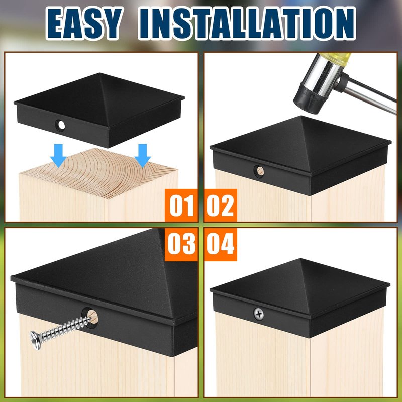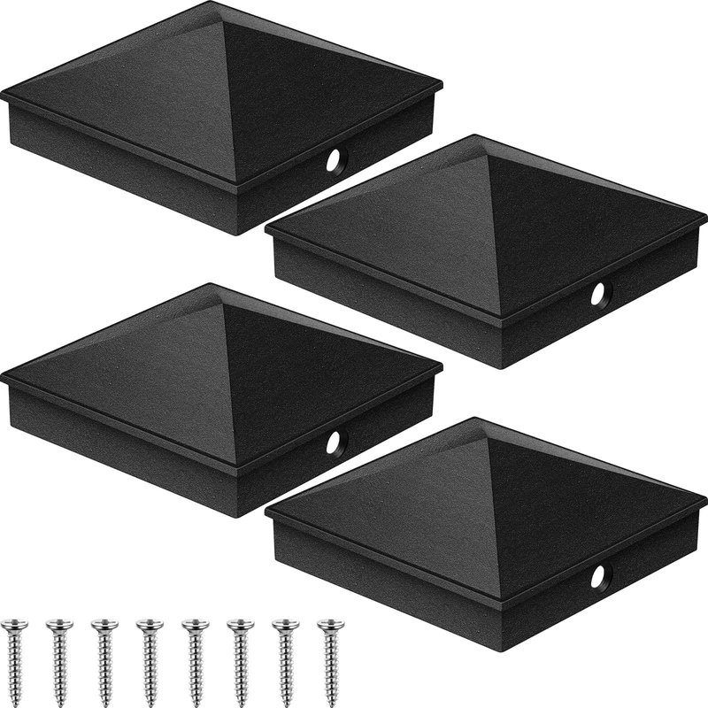 - Protect Posts: these aluminum wood post caps are applied to protect and decorate your fence posts; Install our post caps on top of the post to protect it from damage that can be caused by sun, ice, water and so on, and extend its life; These fence post toppers have a pyramid appearance, and the matte black casing can add a stylish touch to your yard