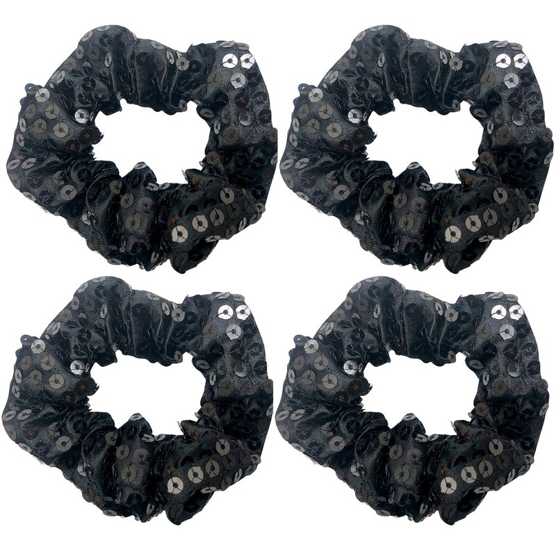 4 Pack Black or Gold Tone Sequins Hair Scrunchies Satin Fabric Scrunchy Bobbles Elastic Hair Ties Bands Hair Accessories for Women Girls (Black)