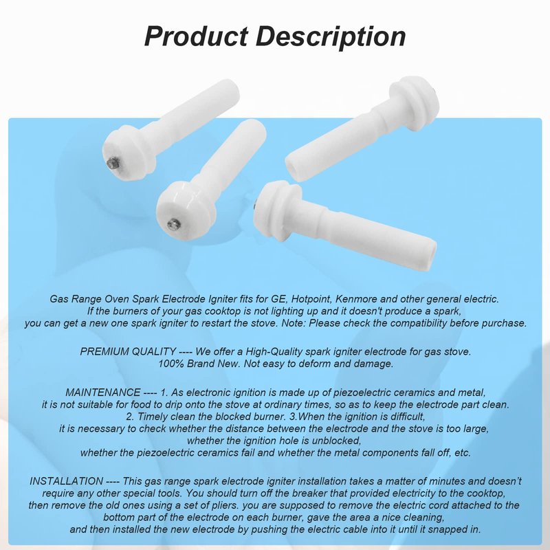 (4 Pack) Gas Range Oven Spark Electrode Igniter Replacement for GE WB13K10014 AP3779012 1085568 Spark Igniter for Gas Range Stove