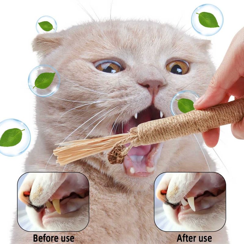 - 【Cleaning while Playing】This cat toys are durable, won't easily fall apart, which is very suitable for your cat to chew. Cats can clean their teeth while eating silvervine chew sticks, effectively remove plaque and tartar, improve oral hygiene, and keep fresh breath, which allows you to interact better with your cat