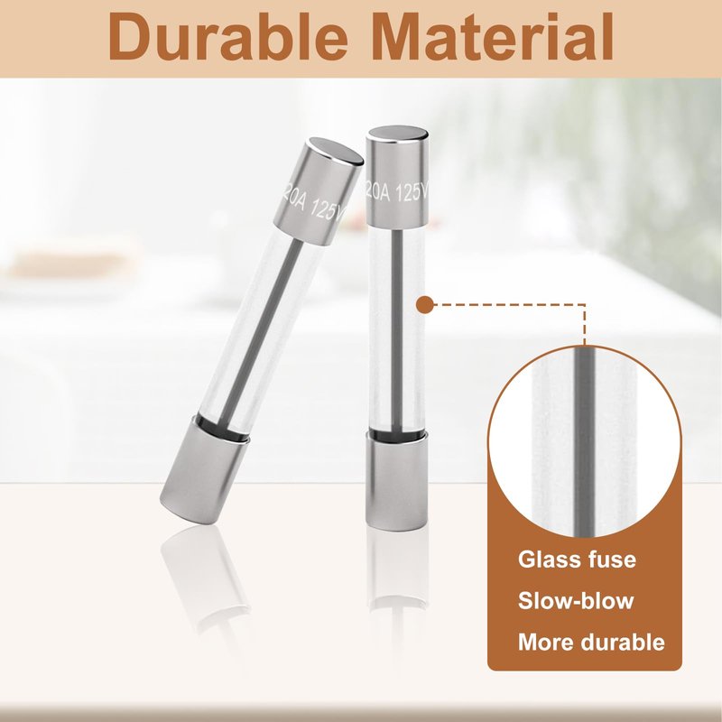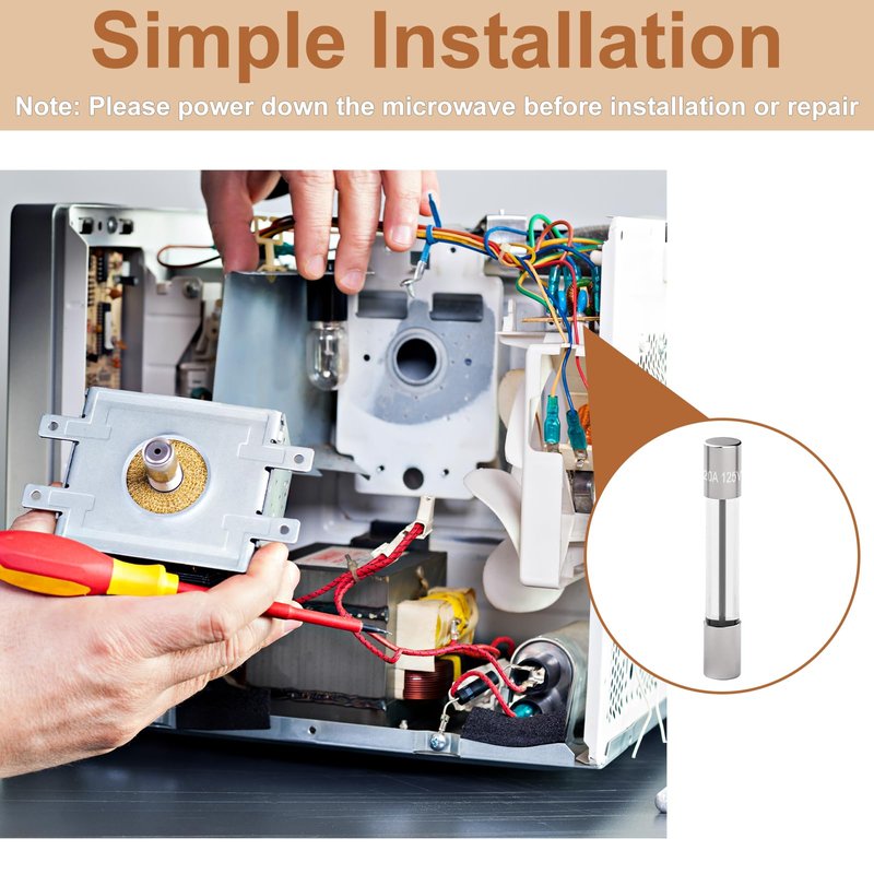 4 Pcs Microwave Oven Fuses Compatible with: Microwave oven fuses is suit for GE Frigidaire Hotpoint Microwave oven product replacement model WB27X11138 5304509451 00469295 1810711 30469294 AH3486694 AP4980426 AP6230606 EA3486694 PS3486694 PS5136235 1381114 50462164 70462163 79083383710 261201200040 AP5648907 PS12071294 50469293 5304464087 5304488359 WB27X10388 For GE Microwave: AVM4160DF1BS AVM4160DF1WS AVM4160DF2BS AVM4160DF2WS AVM4160DF3BS AVM4160DF3WS CEB1590SJ1SS CEB1599EL1DS CEB1599ELDS CEB1599SJ1SS CEB1599SJ2SS CEB1599SJ3SS CEB515M2N1S5 CEB515P2N1SS CEB515P3M1DS CEB515P3N1DS CEB515P4M1WM CEB515P4N1WM CEB1599EL1DS CEB1599ELDS CVM721M2N1S5 CVM919M2N1S5 JES1651SR1SS JES1651SR2SS JES1656SR1SS JNM3160DF1BB JNM3160DF1CC JNM3160DF1WW JNM3161DF1BB JNM3161DF1CC JNM3161DF1WW JNM3161DF2BB JNM3161DF2CC JNM3161DF2WW JNM3161DF4BB JNM3161DF4CC JNM3161DF4WW JNM3161MF1SA JNM3161MF2SA JNM3161MF3SA JNM3161MF4SA JNM3161RF1SS JNM3161RF2SS JVM3160DF1BB JVM3160DF1CC JVM3160DF1WW JVM3160DF2BB JVM3160DF2CC JVM3160DF2WW JVM3160DF3BB JVM3160DF3CC JVM3160DF3WW JVM3160DF4BB JVM3160DF4CC JVM3160DF4WW JVM3160DF5BB JVM3160DF5CC For Frigidaire Microwave: CFMV1645TBA CFMV1645TSA CFMV1645TWA CGMO226NUF CGMV176NTBA CGMV176NTDB CGMV176NTFA CGMV176NTFC CGMV176NTWA CPMO227NUFA FFMV1645TBA FFMV1645TDA FFMV1645THA FFMV1645TMA FFMV1645TQA FFMV1645TSA FFMV1645TWA Tips: This fuses is designed for 20 Amp 125 Volt microwave ovens, not suitable for all models. Please confirm compatibility before purchasing. Package List: 4× 20 Amp 125 Volt microwave oven fuses1×towel1* plastics box (Used to install fuses) Note: This is not an original product. The brand name and logo of other brands are registered trademarks of their respective owners.