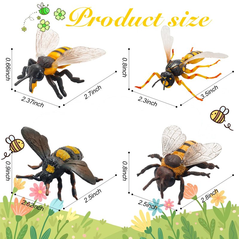 Add a buzz to your collection with this 4 pcs bee figurine set! Each realistic bee figure is made of high-quality material, perfect for science projects or as cake toppers. These various bee models are sure to impress, great for 12+ years old. Bring the wonder of the insect world to life with these fake bee animal figures.