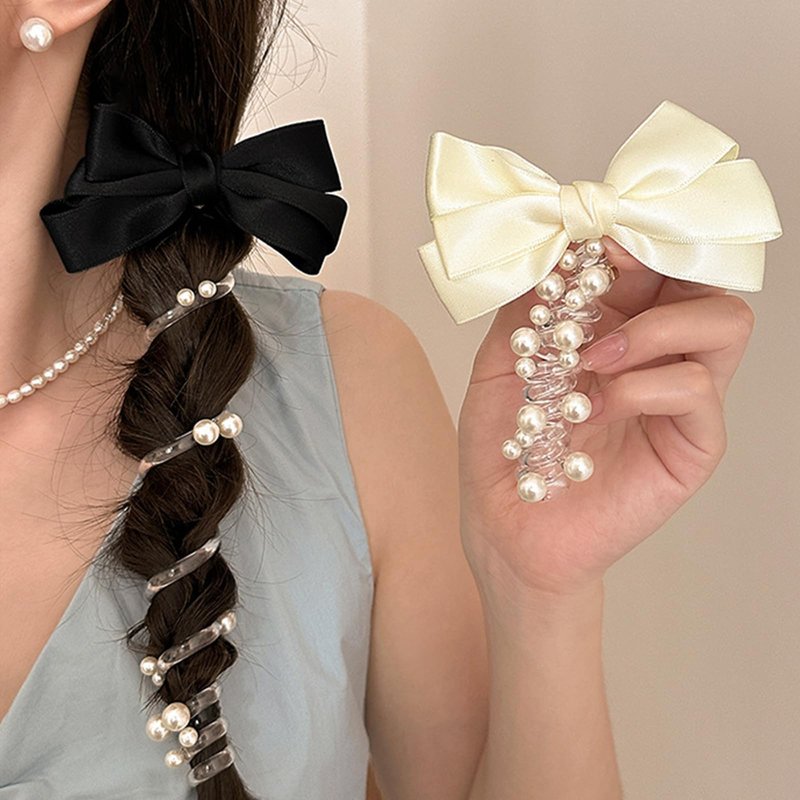 Bow Pearl braided telephone cord scrunchie spiral elastic rubber hair tie Holiday wedding Birthday party Halloween Christmas hair accessories