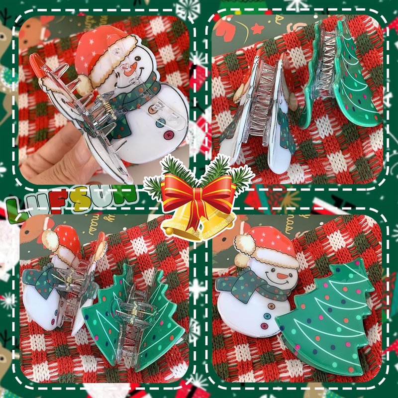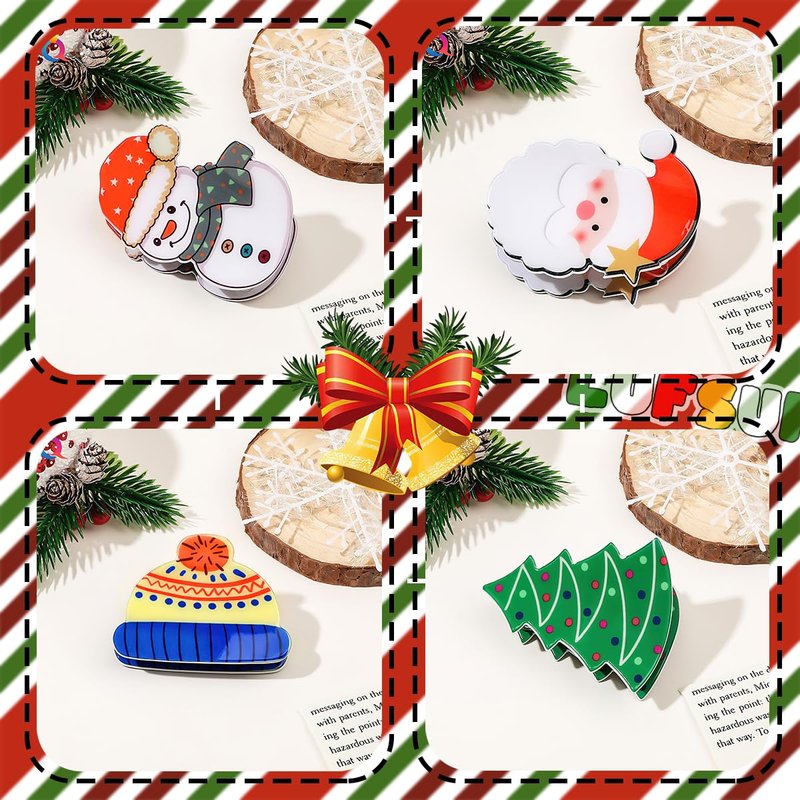- The set includes 4 different styles of Christmas themed hair clips, including Santa Claus, Christmas tree, cute snowman, and knit hat pattern hair clips, which will add a festive touch to your hair and look during the holiday season.