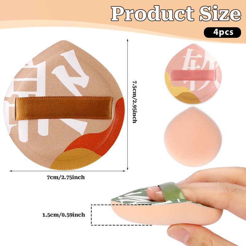 4 PCS Korean Powder Puffs, Soft Makeup Puff Teardrop Setting Foundation Sponge Face Makeup Cushion Puff Beauty Blender Sponge Applicators for Concealer Liquid Cream Powder, Beginner Friendly, Medium
